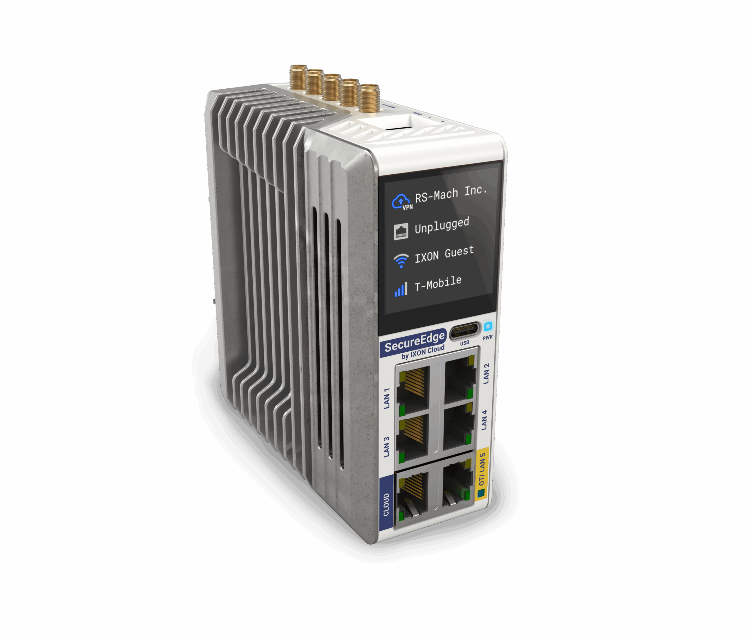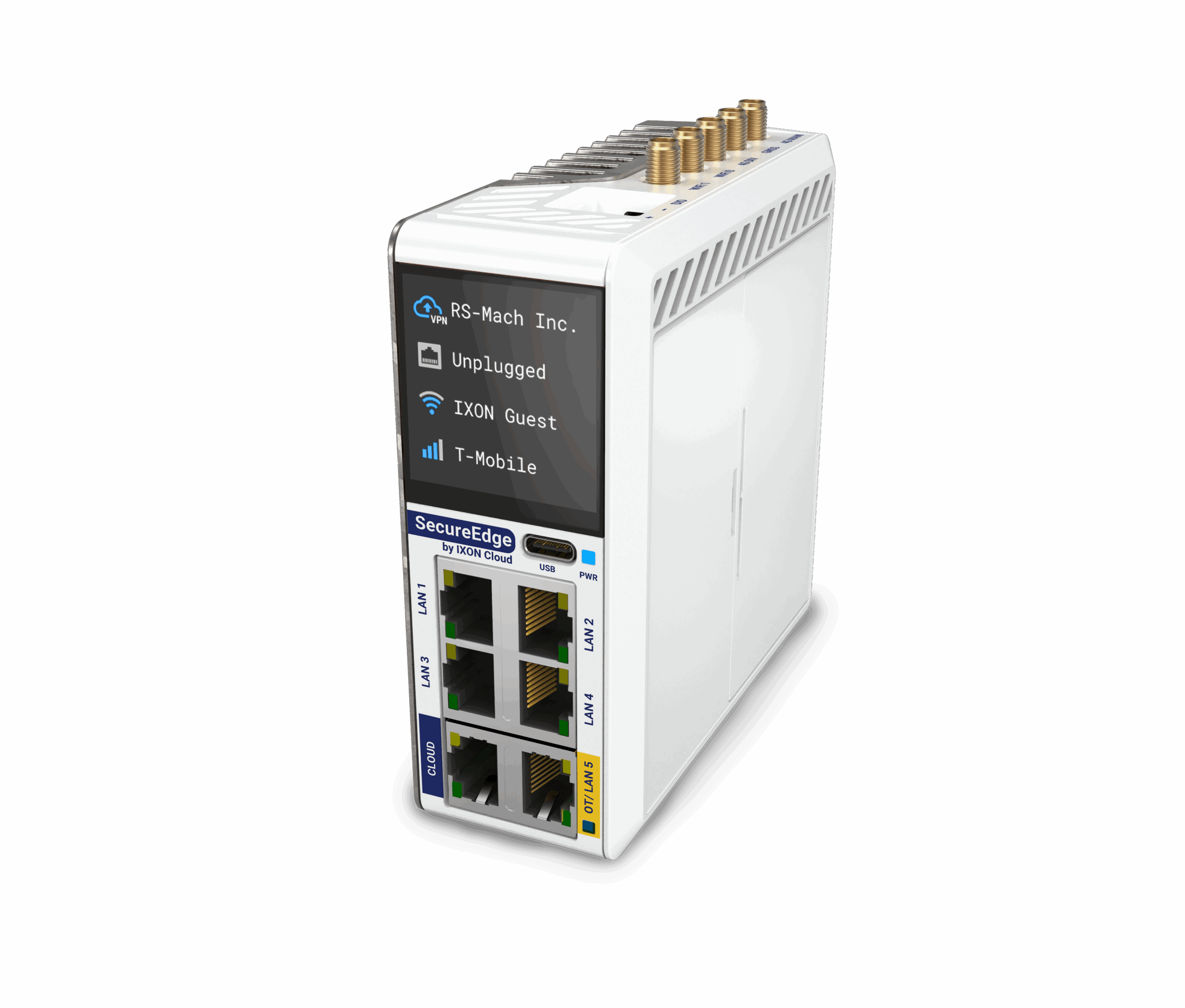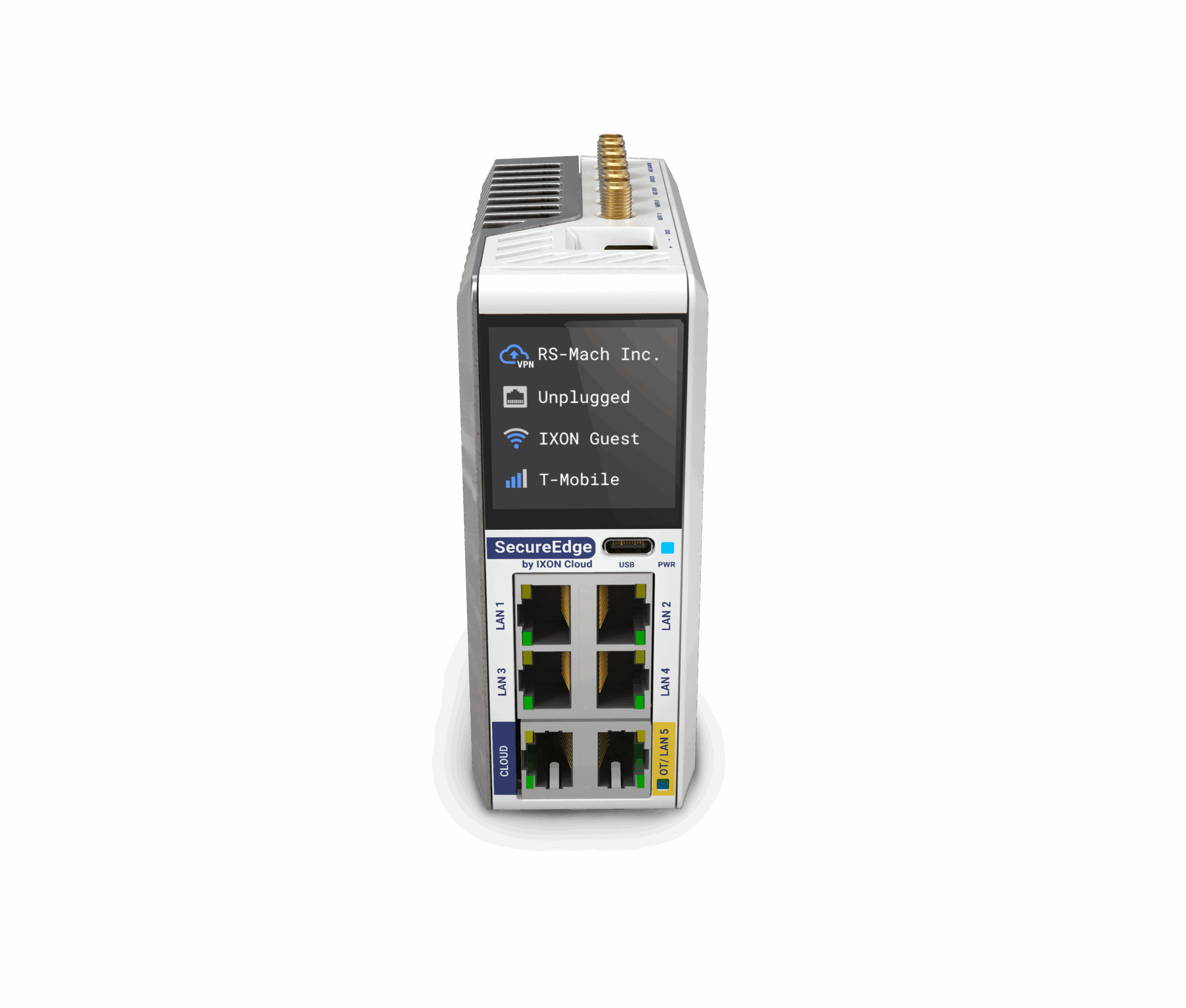 A SecureEdge Pro – Ethernet egy fejlett ipari VPN router, amely vezetékes Ethernet hálózaton keresztül biztosítja a kapcsolatot az ipari eszközök és az Ixon Cloud platform között. Emellett a beépített érintőképernyőnek köszönhetően könnyen paraméterezhető.