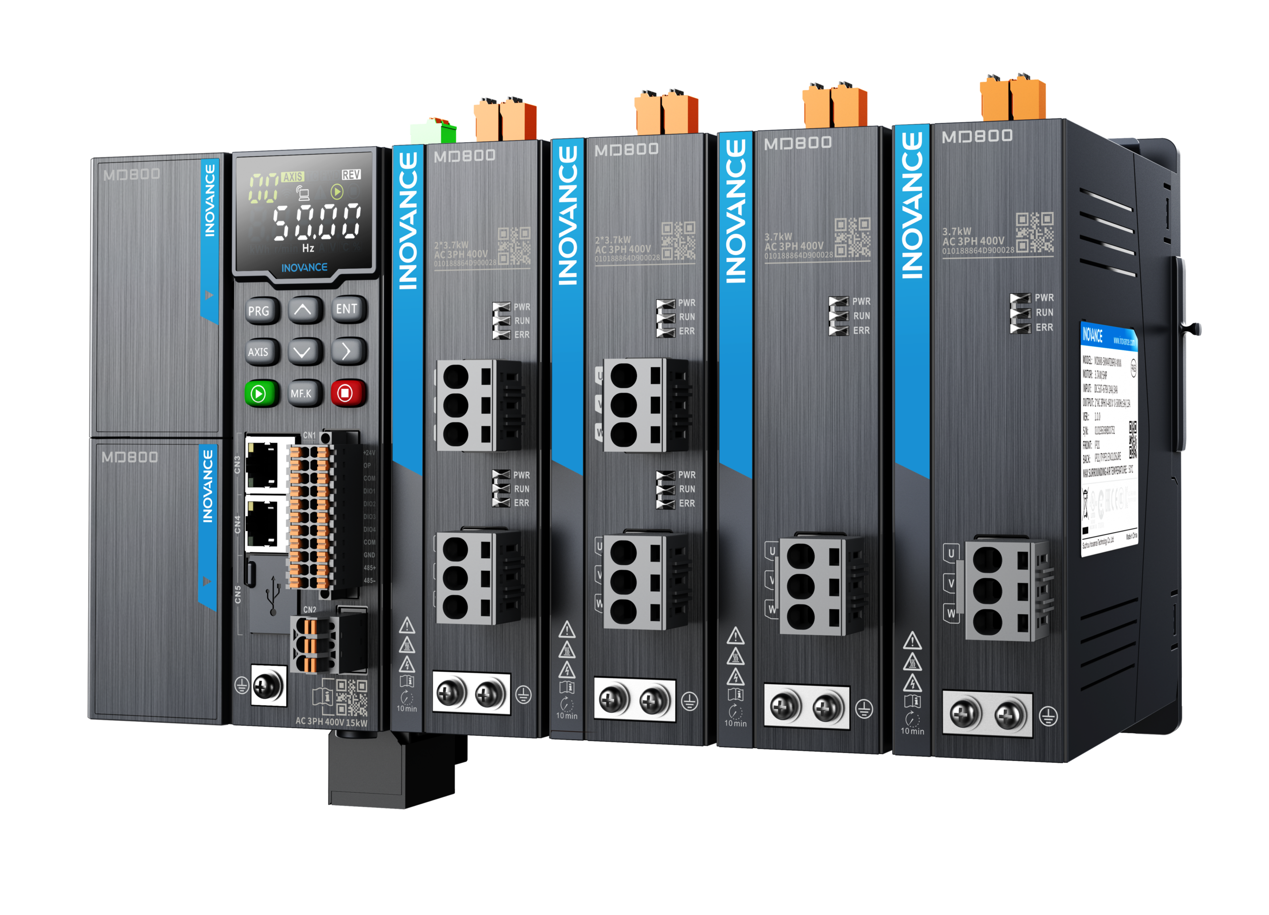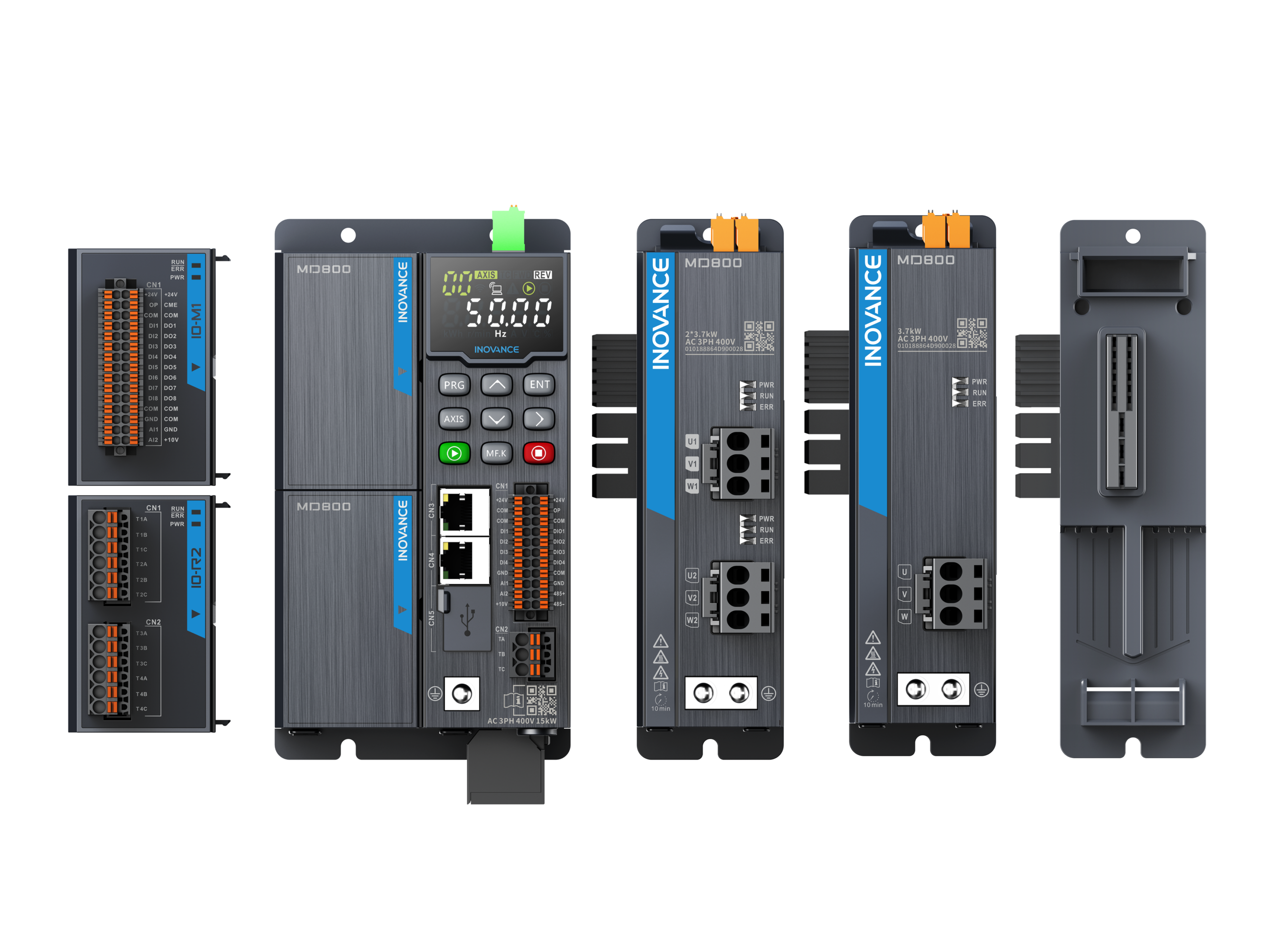 Az MD800 moduláris frekvenciaváltó az Inovance meghatározó megoldása a kis teljesítményű hajtások kategóriájában. Innovatív, moduláris felépítésének köszönhetően akár 50%-kal kisebb helyet igényel a hagyományos frekvenciaváltókhoz képest. A rendszer rugalmasan konfigurálható: a szükséges teljesítményszint, a meghajtómodulok száma és a kommunikációs bővítések az adott alkalmazás igényeihez igazíthatók. Az eredmény egy kompakt, jól átgondolt, moduláris hajtásrendszer, amely egyszerűbb telepítést és kisebb kapcsolószekrény-igényt biztosít.