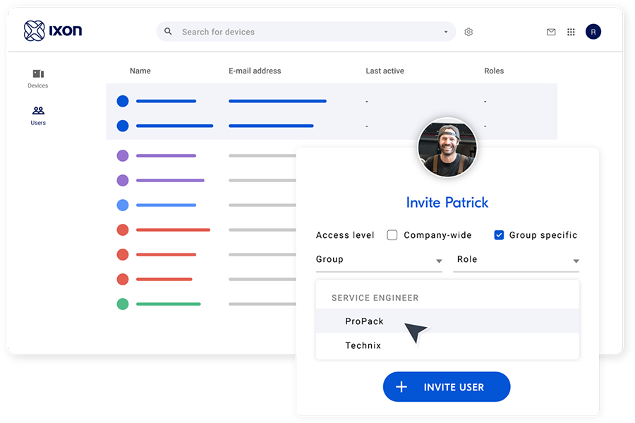 Testreszabhatja az IXON fiókhoz tartozó felhasználókat saját igényei szerint. Minden funkcióhoz gyedileg biztosítható a hozzáférés, személyek vagy csapatok szerint is. Vezessen nyilvántartást auditokról, és állítson be kétfaktoros hitelesítést felhasználóinak.