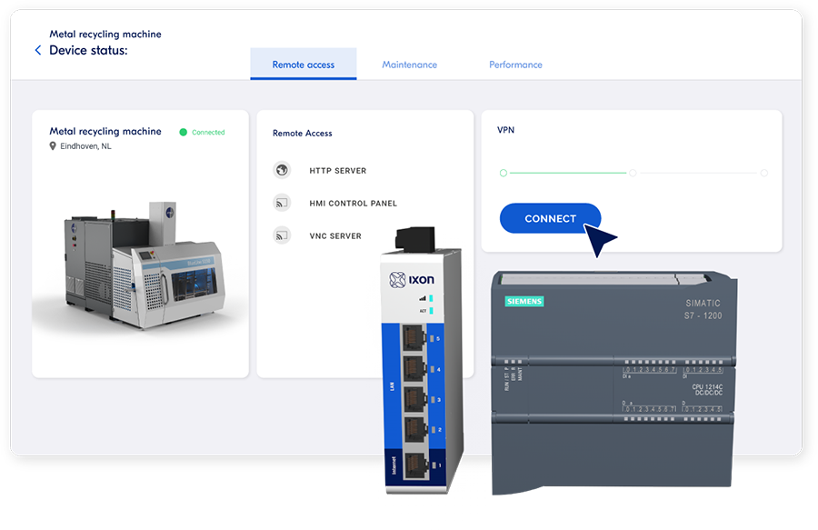 Az IXON távelérési eszközei Ethernet-es, 4G-s és Wi-Fi-s kivitelben is kaphatók, és minden nagyobb PLC márkát támogatnak. A beépített tűzfal és egyéb biztonsági funkciók garantálják a gépek és adatok biztonságát.