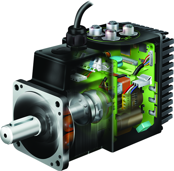 A JVL világszerte élenjáró gyártó az integrált léptető- és szervomotorok terén. Ezek az innovatív megoldások lehetővé teszik, hogy a motorok vezérlése és hajtása a gép belsejében, a vezérlőszekrényen kívül helyezkedjen el. Ezzel jelentősen csökkenthető a szekrény mérete, valamint olyan esetben is van lehetőség utólagos motorok beszerelésére, amikor már egy kész gépnél a hely hiánya miatt erre nem lenne lehetőség. Ezen kívül elkerülhetők a hagyományos enkóderkábel sérüléséből eredő megállások, motorcserék.